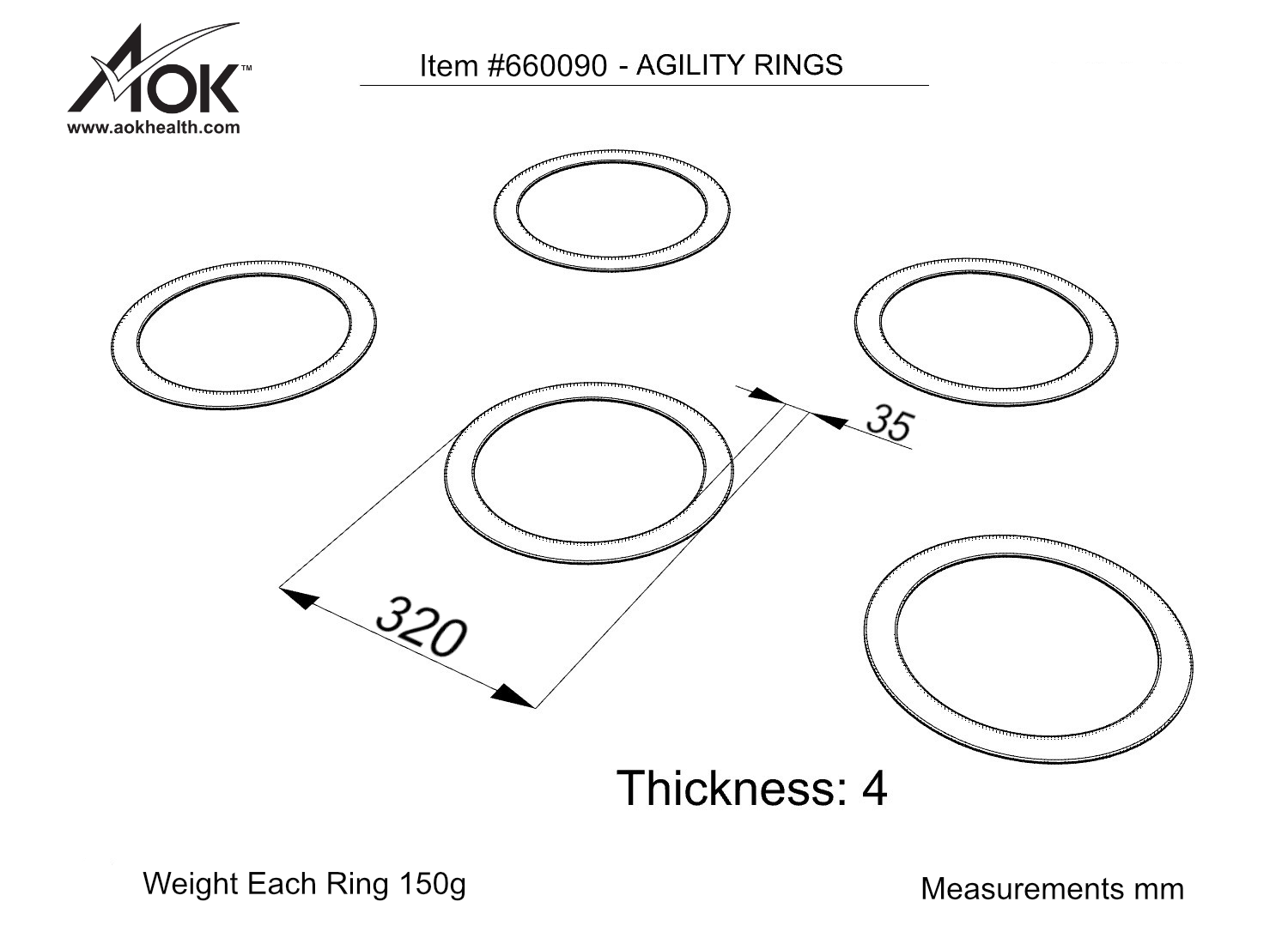 Agility Rings are flat, flexible and plastic rings, 32cm in diameter (OD) with edge 3.5cm wide. Flexible rings are great for indoor and outdooor training – sports include soccer, football, league, union, hockey and most other sports requiring fast directional change. They are a fantastic part of training exercises, as they are essential for abdominal strength, co-ordination and calf muscle development. They are durable, light weight training equipment, which come in multiple colours. Come in sets of 5.