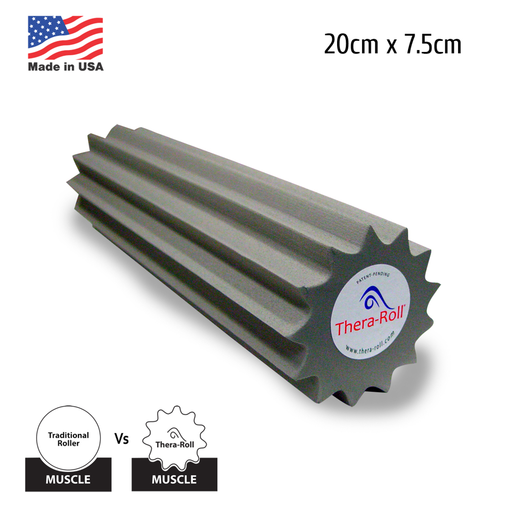 The patented ribbed design of the Thera-Roll is a potent variation on the traditional Physio Roller. Offering increased penetration of the soft tissue and increased traction allowing the fascia to slide over the adjacent tissue. This encourage tissue rehydration by opening interstitial spaces